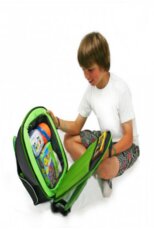 Es una espaciosa mochila, aprobada como equipaje de mano, que sirve también como asiento elevador.